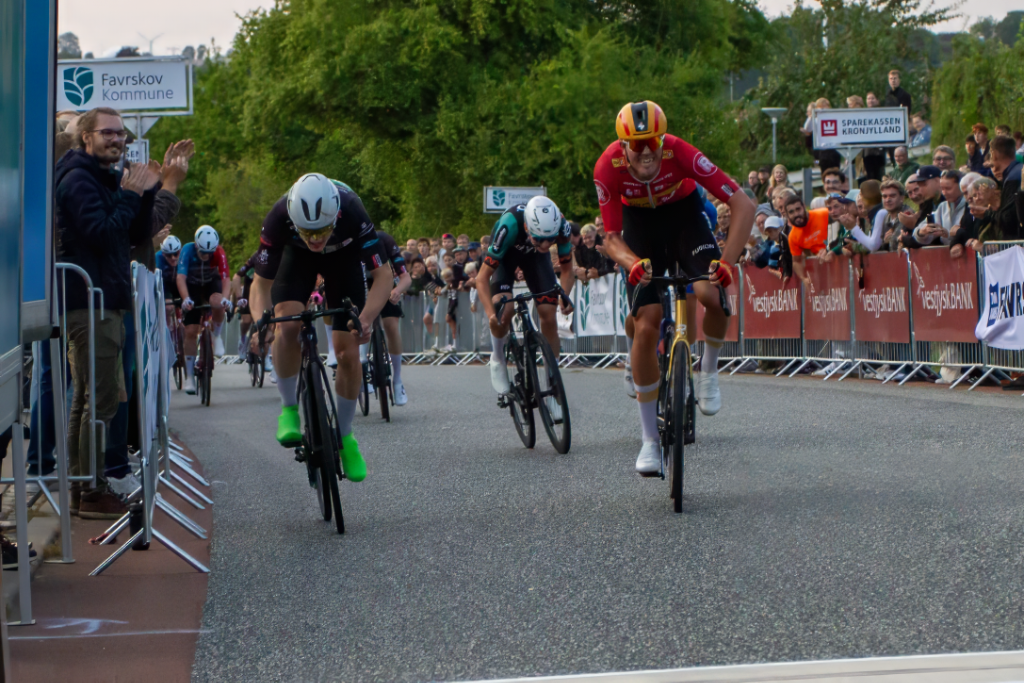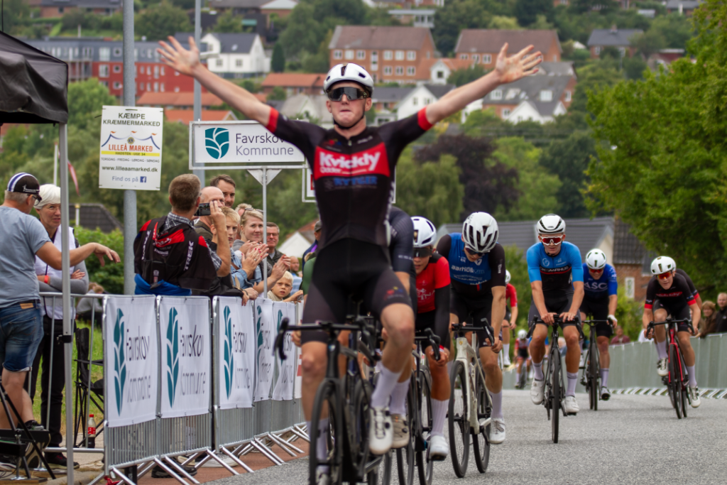 Han krydsede målstregen alene og kunne hæve armene i triumf. Tobias Lund tog andenpladsen, mens Anders Vos Sørensen akkurat slog Rasmus Bøgh Wallin i kampen om tredjepladsen.